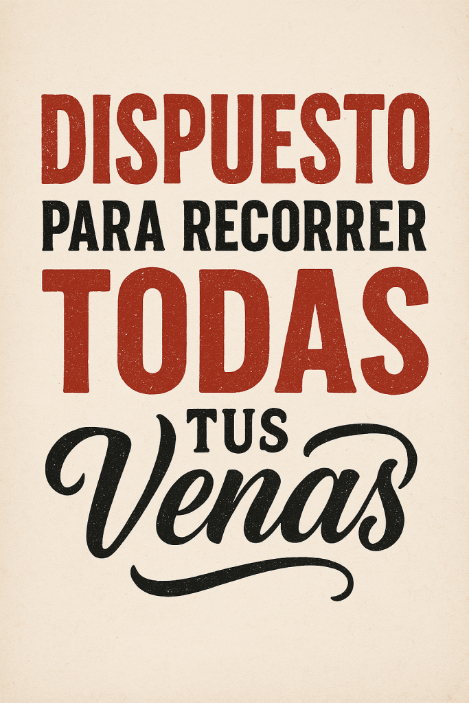 DESENSIBILIZANTEDispuesto para recorrer todas tus venas a conocer los perfiles rectilíneos que guían todas tus venas la longitud, grosor y colesterol químicamente de todas tus venas la fórmula códice y enigma de todas tus venas que transportan del cerebro emigran nos trae emoción riegan el campo de este poema poema de todas tus venas.
